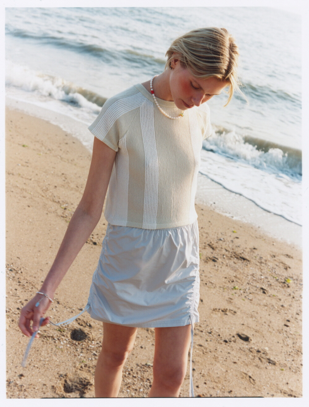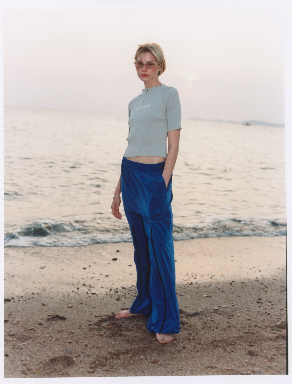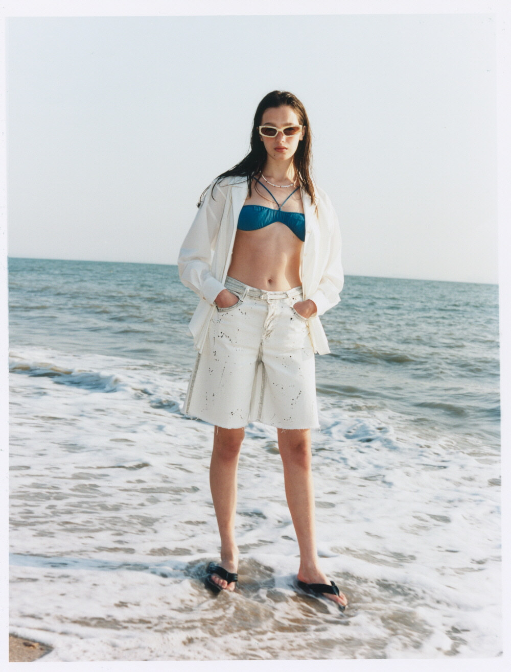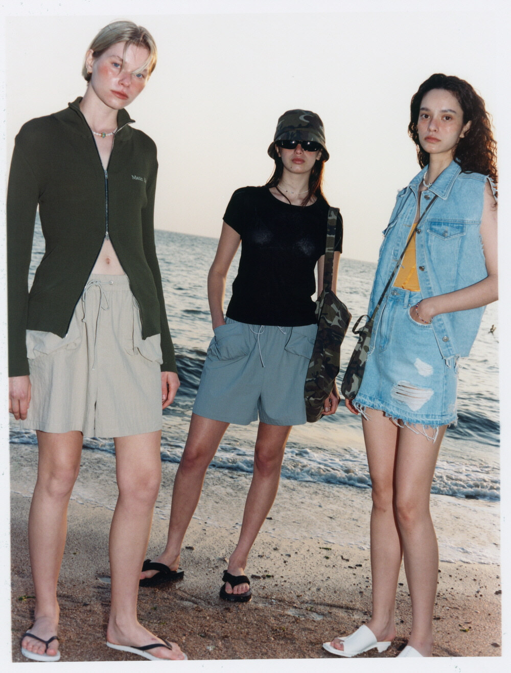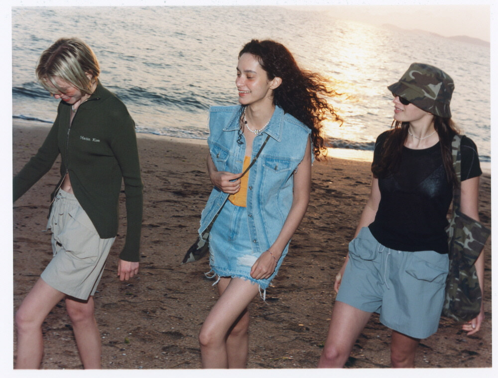 Leaving behind the busy days, they enjoy their own vacation filled with joy and happiness. Inspired by the idea of "a fleeting moment," this Hot Summer collection breaks away from typical designs, focusing on subtle details, diverse materials, and silhouettes that are stylish without being excessive. The Matin Kim Hot Summer collection features denim designs perfect for summer, breathable knits and colors, and minimal innerwear that can be easily layered. Whether indoors or outdoors, this collection is designed to create a stylish look for every occasion.