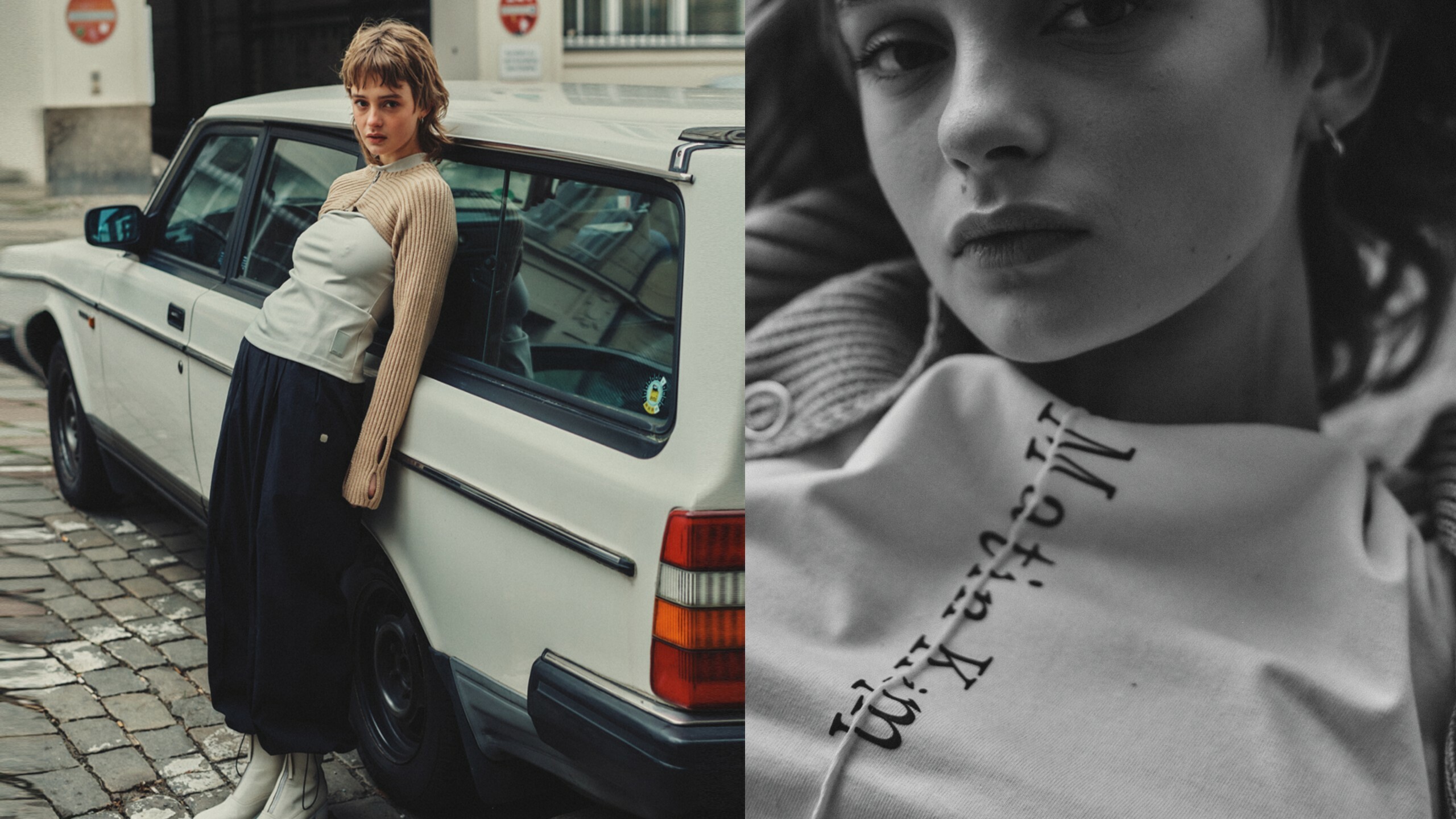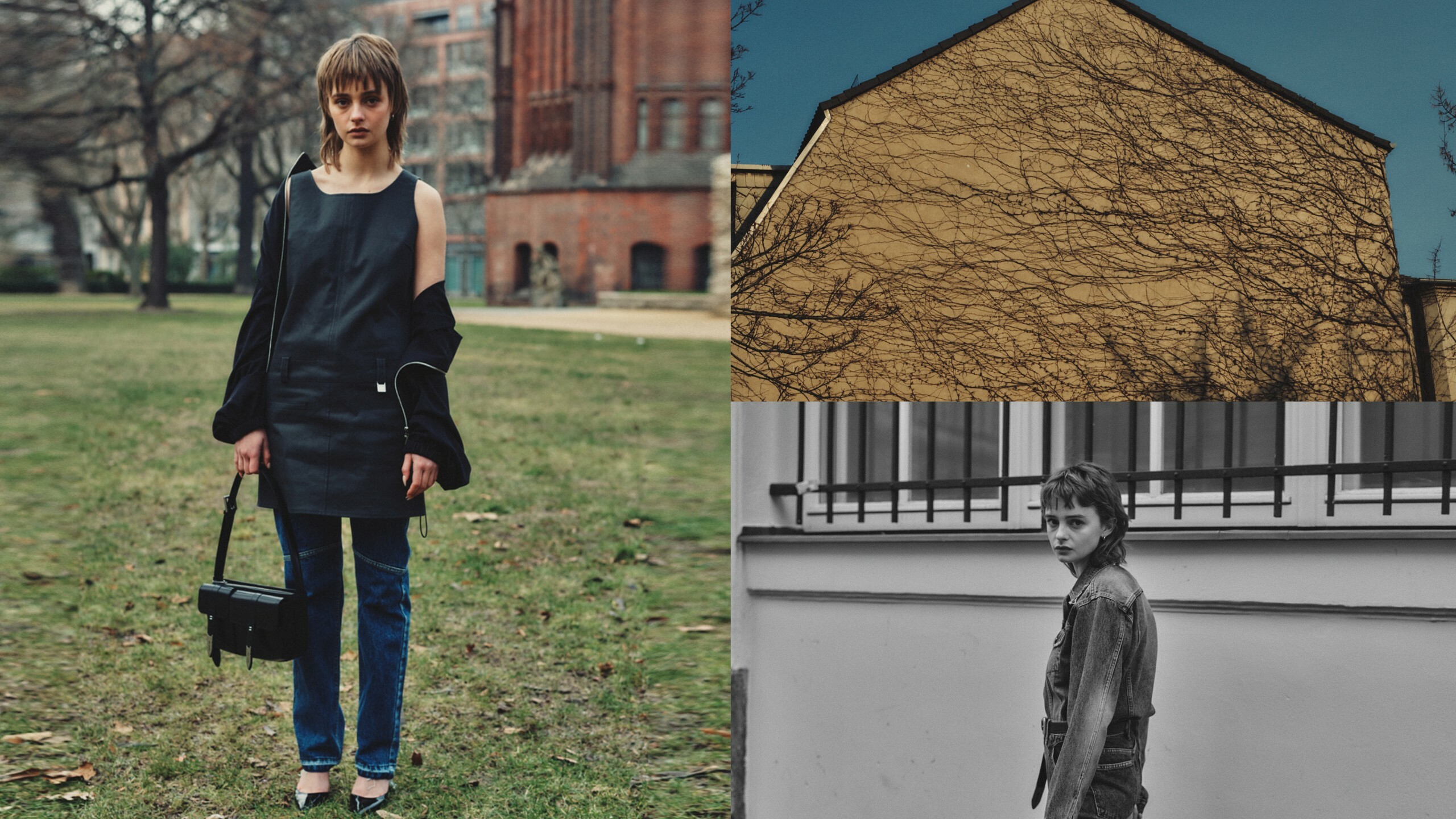 The first mood of MATIN KIM Spring Summer 2022 expressed Berlin's cold, free and wild. It features a style that is not confined by mixing various materials such as denim, fake leather, and knit, and matching classic accessories with a casual mood.