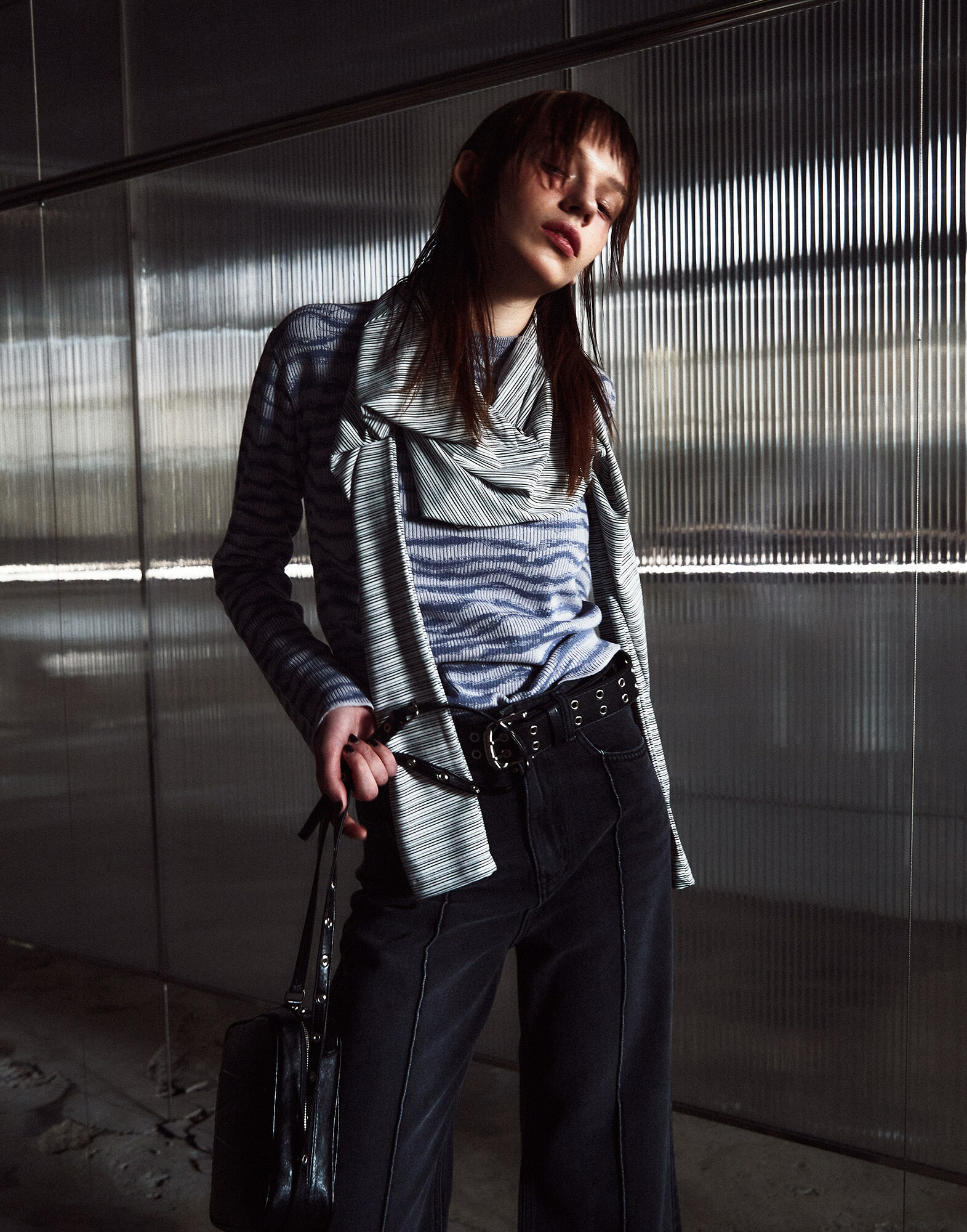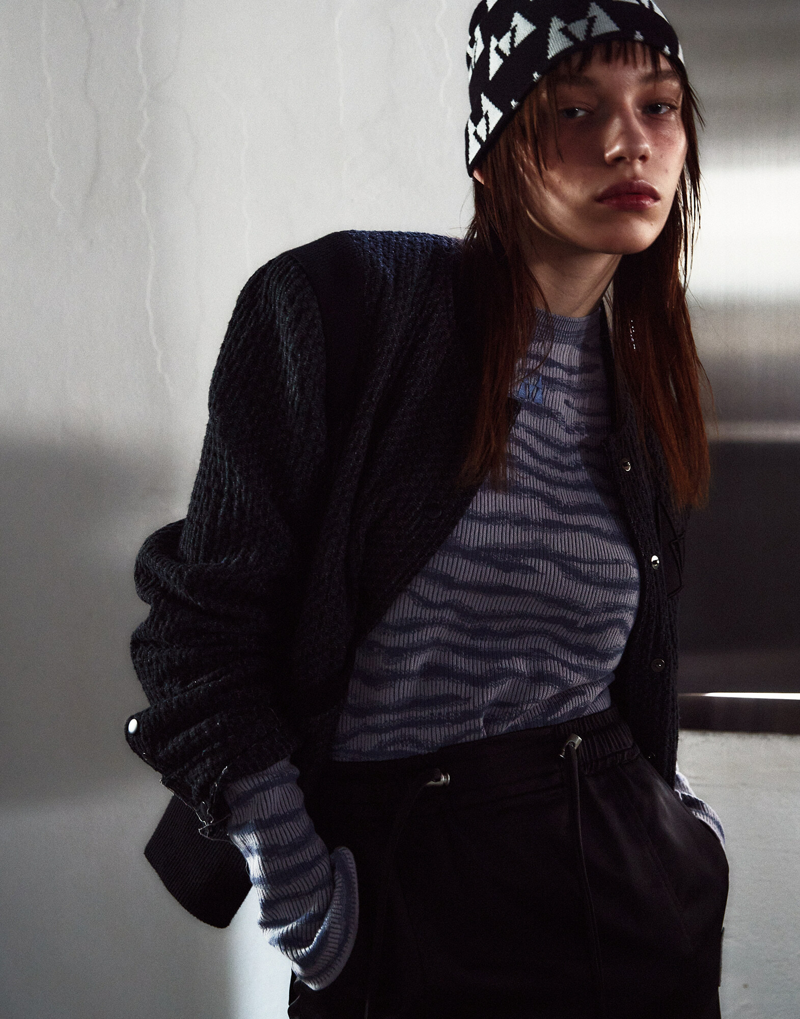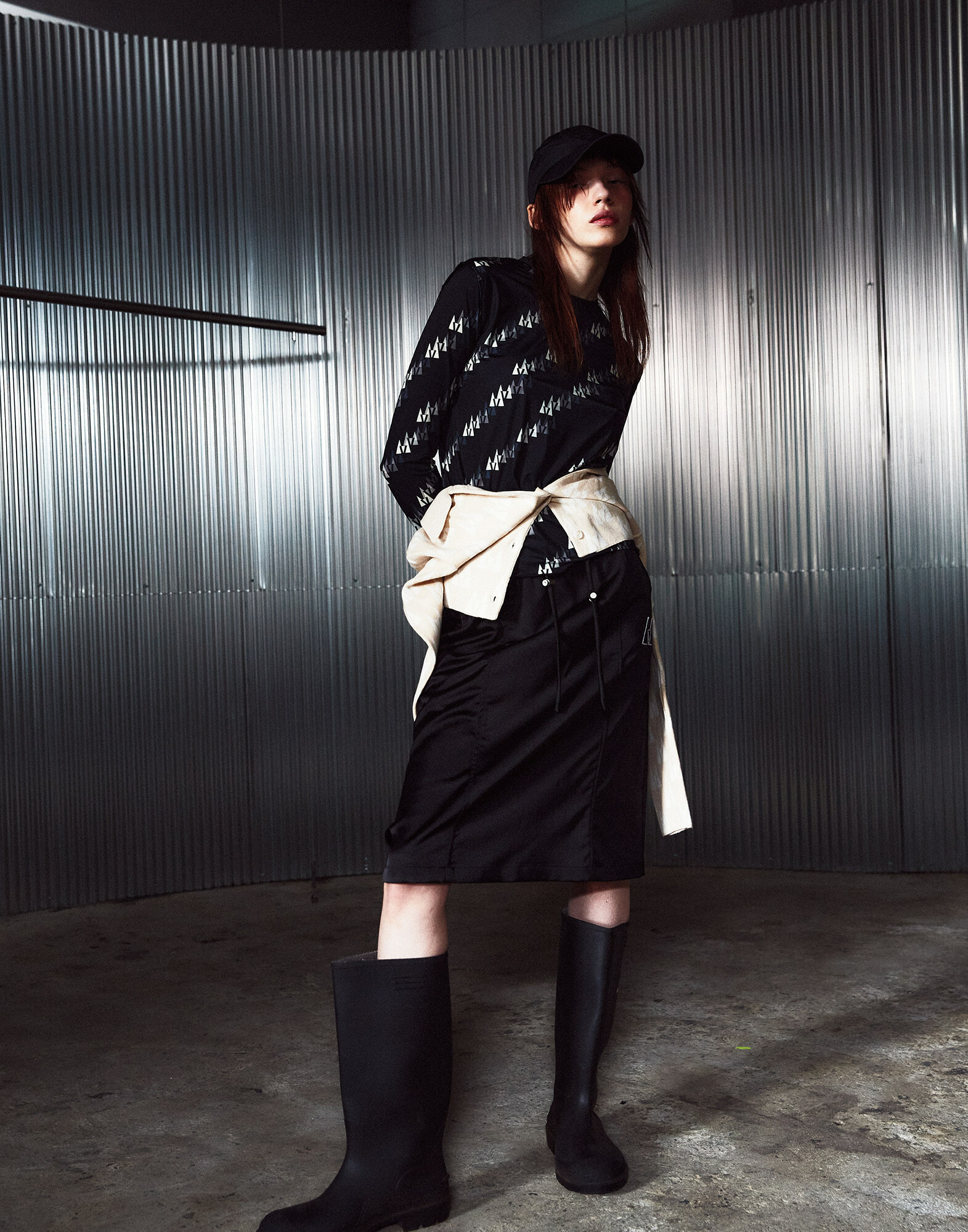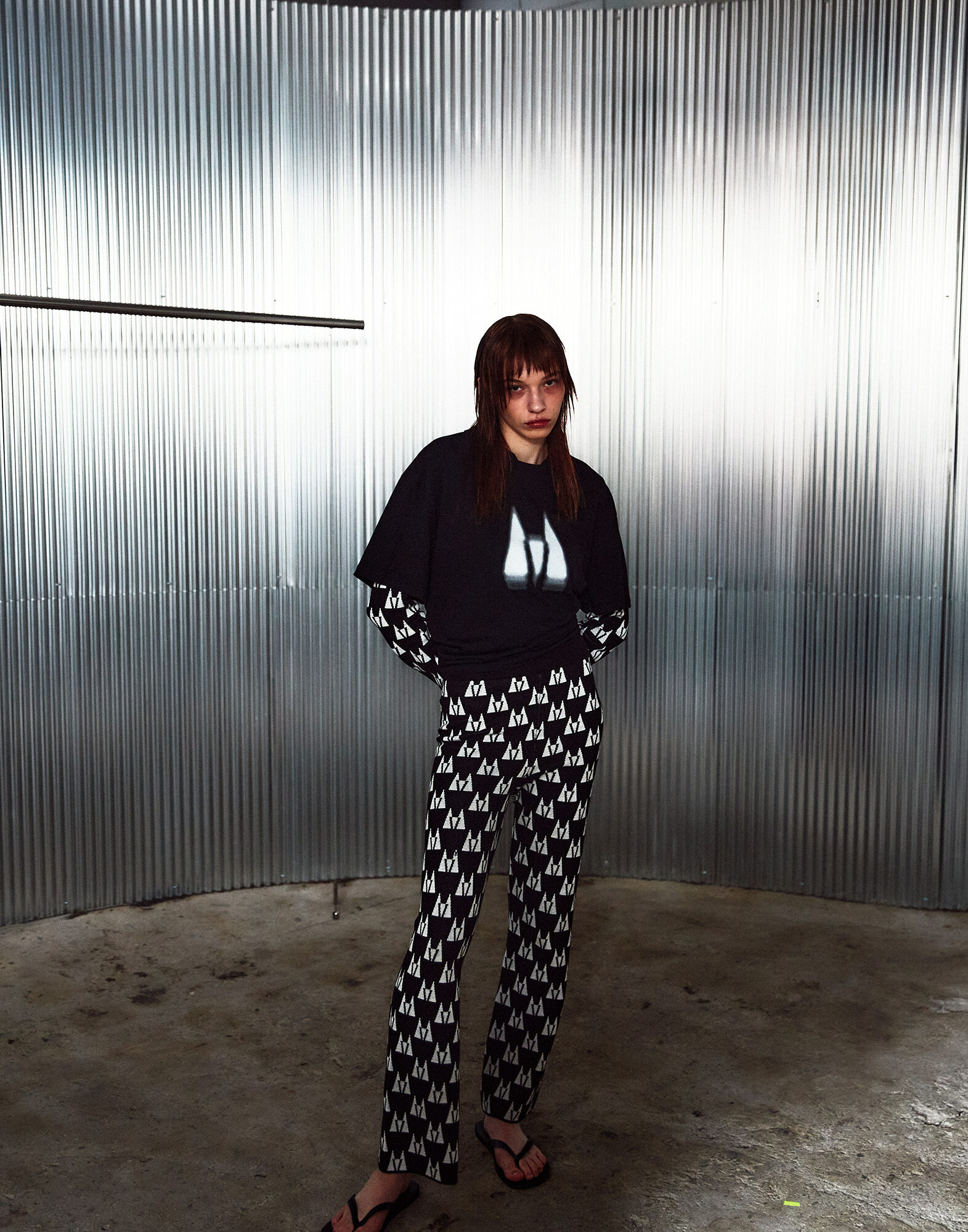 The Matin Kim line expresses a sense of freedom, unconfined by conventions. By incorporating logo patches, graphics, and symbol jacquards into the designs, it presents a cool and chic look that is accessible to everyone.