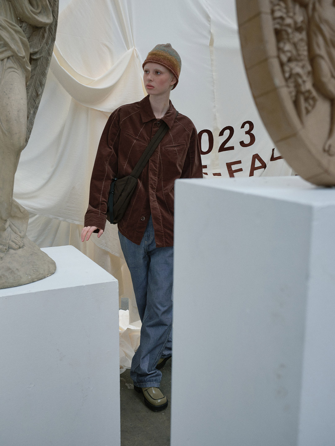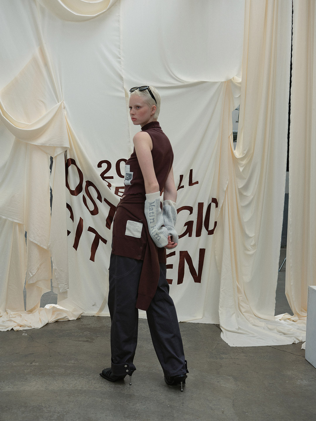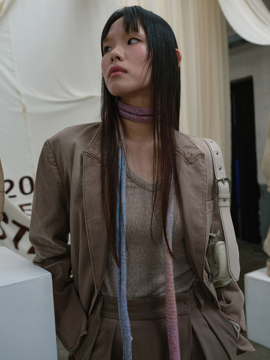 We each have our own nostalgia in our hearts. Matin Kim 23 Pre-Fall Collection started with our own secret spot bring to mind childhood longing. The warm and lyrical elements of the secret spot, in contrast to the urban outfit, show better the special selection for the pre-fall season. Meet the 23 Pre-Fall collection that reveals Matin Kim's chic identity, including a rough-detailed blazer, knitwear using vintage patterns, and thick logo T-shirts.