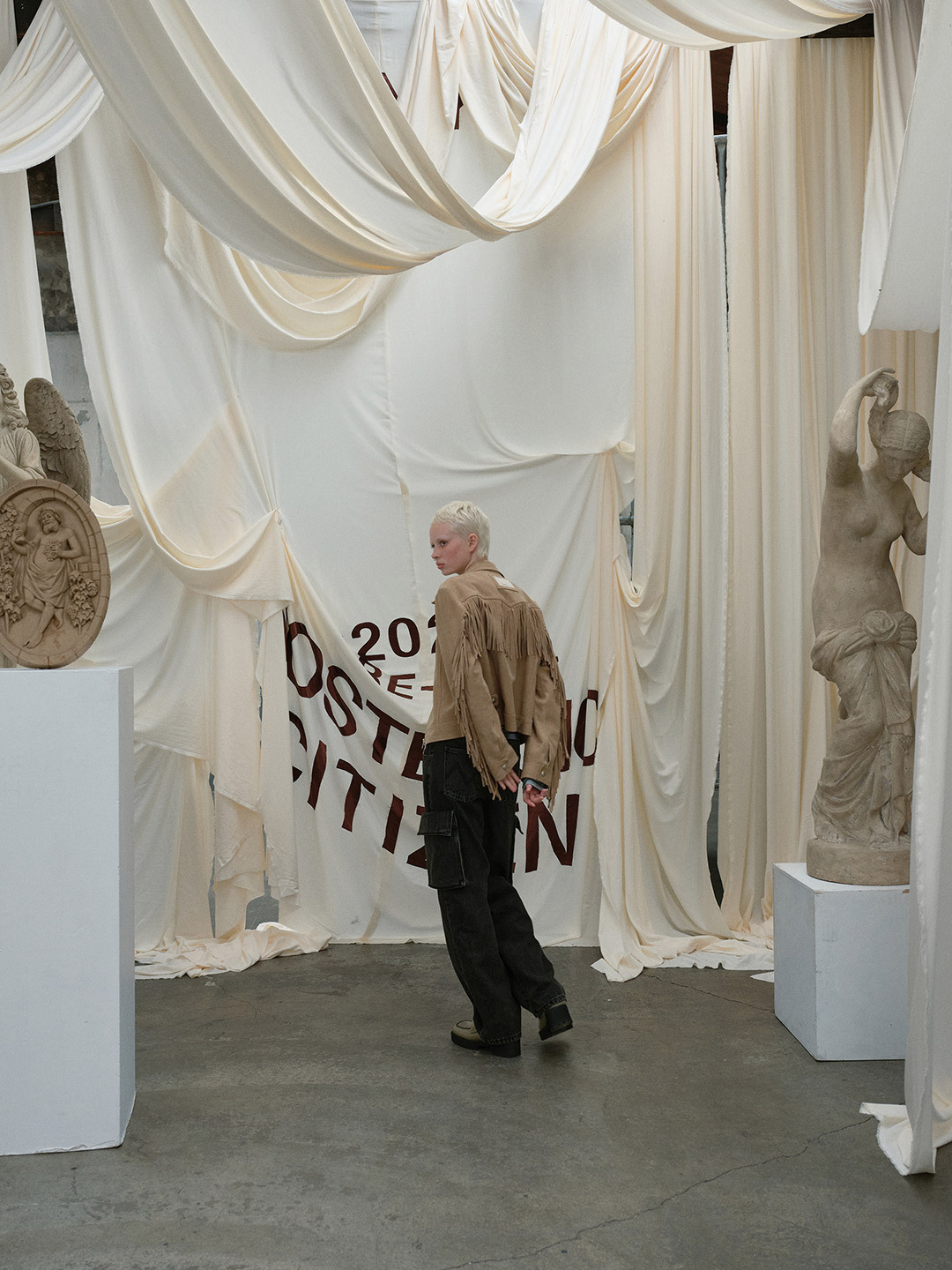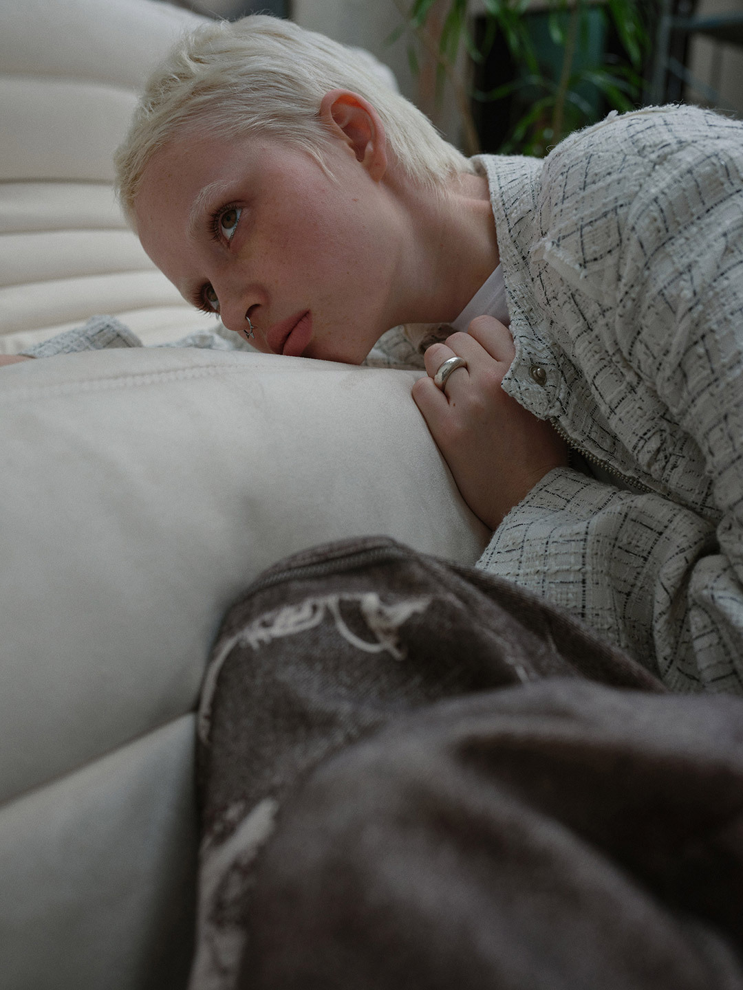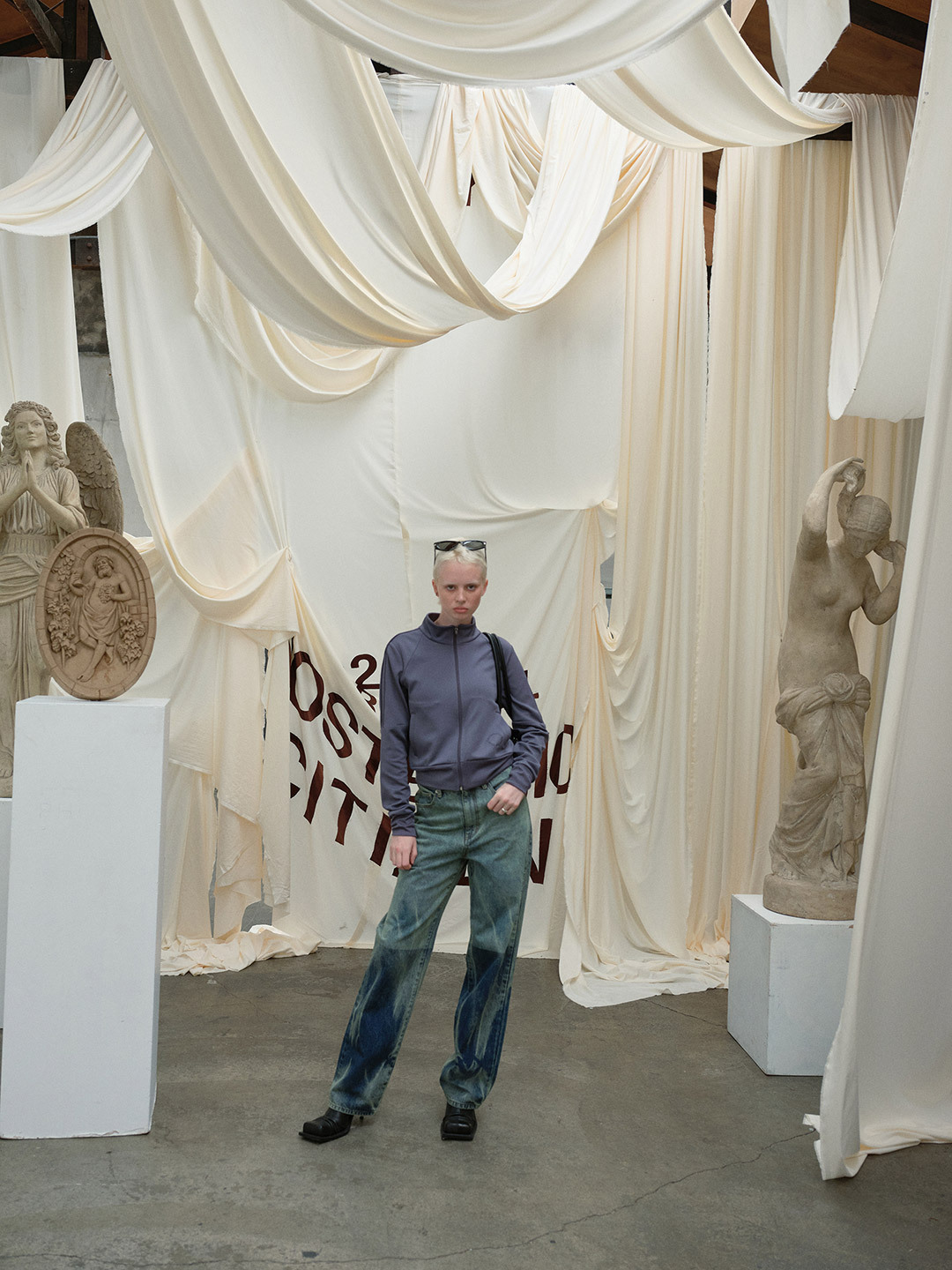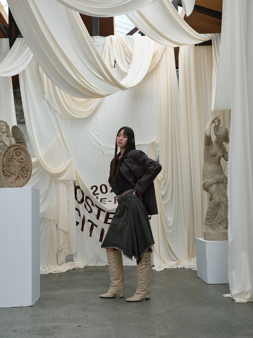 We each have our own nostalgia in our hearts. Matin Kim 23 Pre-Fall Collection started with our own secret spot bring to mind childhood longing. The warm and lyrical elements of the secret spot, in contrast to the urban outfit, show better the special selection for the pre-fall season. Meet the 23 Pre-Fall collection that reveals Matin Kim's chic identity, including a rough-detailed blazer, knitwear using vintage patterns, and thick logo T-shirts.