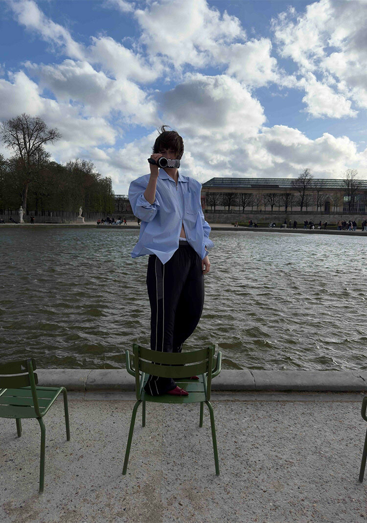 We present Matin Kim's 2024 Capsule Collection through the lens of global photographers, each based in different cities. In the first city, Paris, the collection showcases the perspective of photographer Pavel (@pavelgolik), who captures an unrefined, raw mood. In the second city, London, we feature a collection photographed by Guy (@bandini3000), known for his unique way of capturing movement.